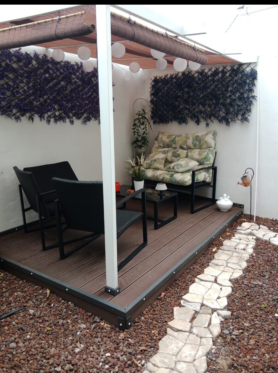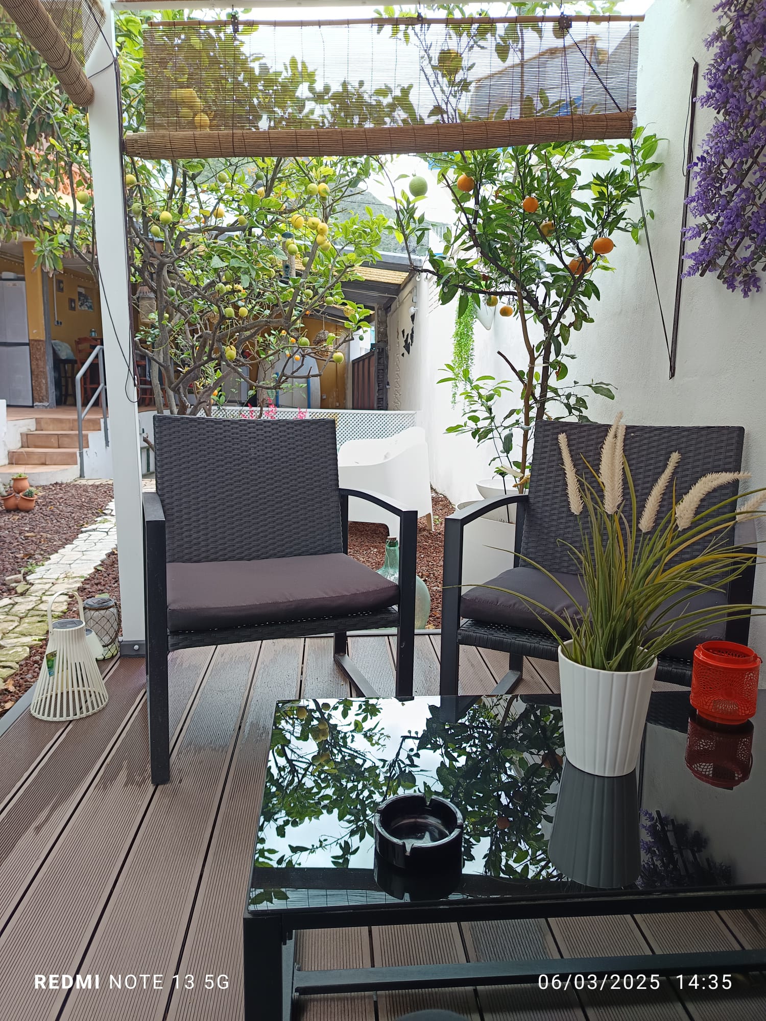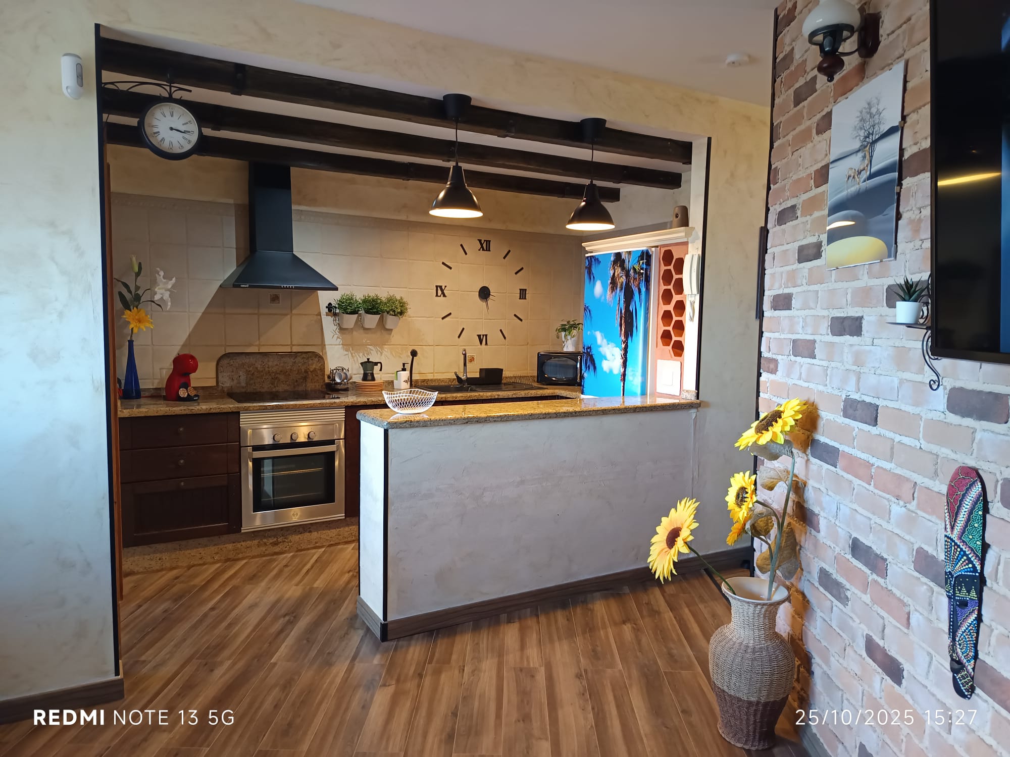 cocina habitación, 1 baño, jardín con zona chillout, barbacoa exterior, comedor, con posibilidad de contratar grifo de cerveza